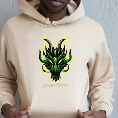 Unleash your inner power with this epic “Green Flame” design, featuring a fierce dragon face engulfed in vibrant green fire.